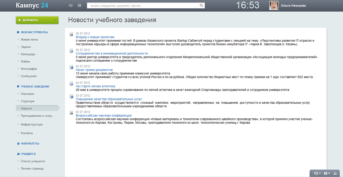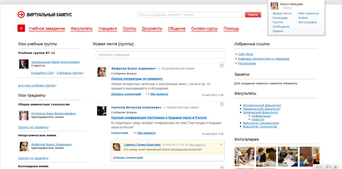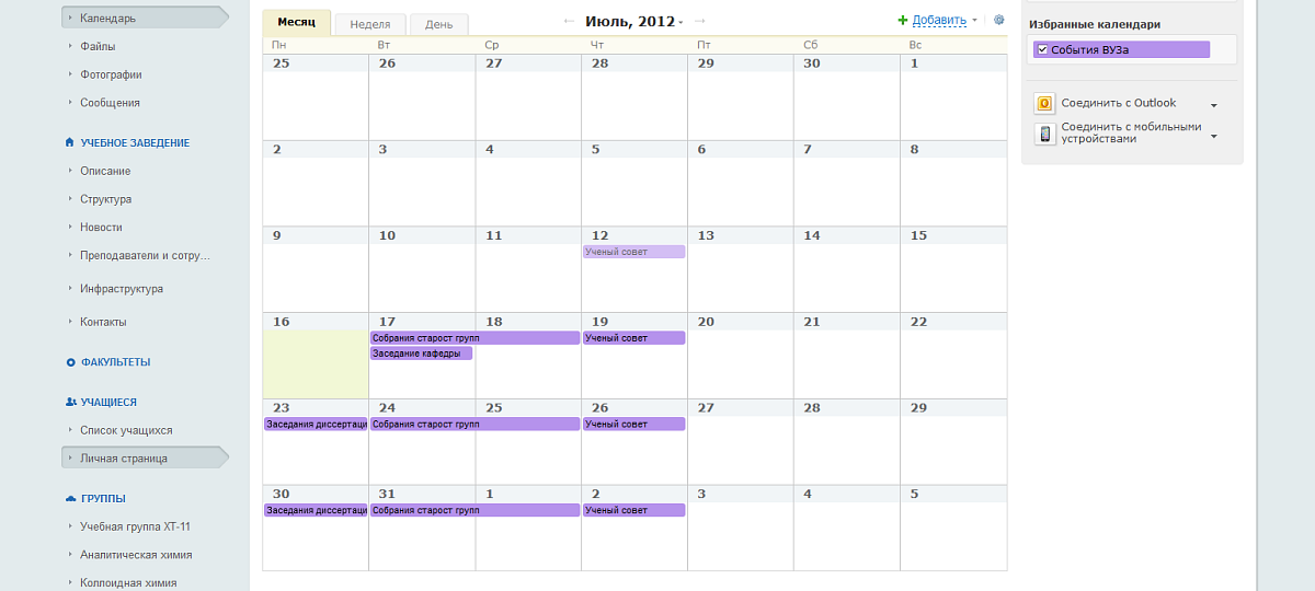 • Получить подробную информацию кафедры, факультета (новости, документы, календари событий);