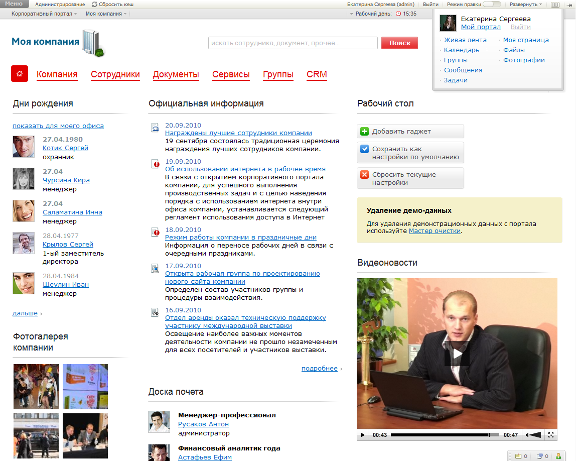 • HR-портал с представление организации, сотрудников;