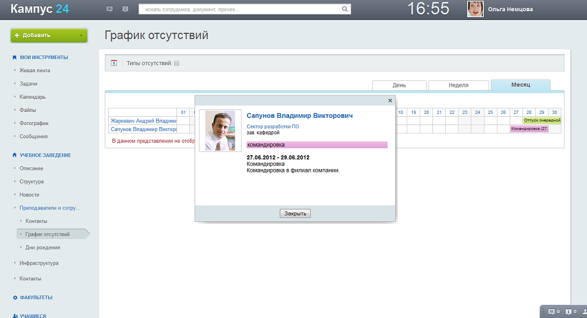 1. Корпоративный портал для сотрудников учебного заведения (интранет-зона)