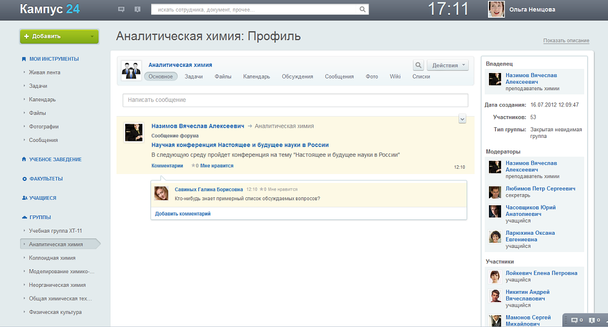 • Вести группы по своим предметам. Пополнять базу знаний по предмету, коммуницировать с учащимися по предмету;