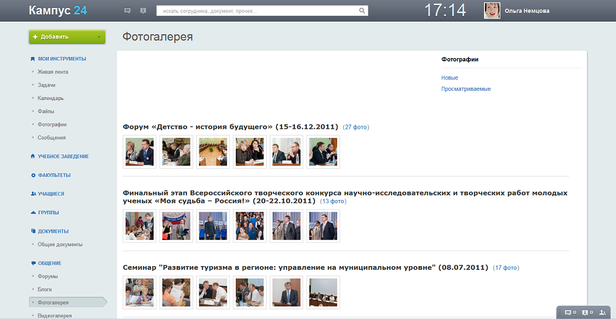 • Создавать отдельные разделы портала по факультетам/кафедрам, делегировать права на управление ими и размещение информации