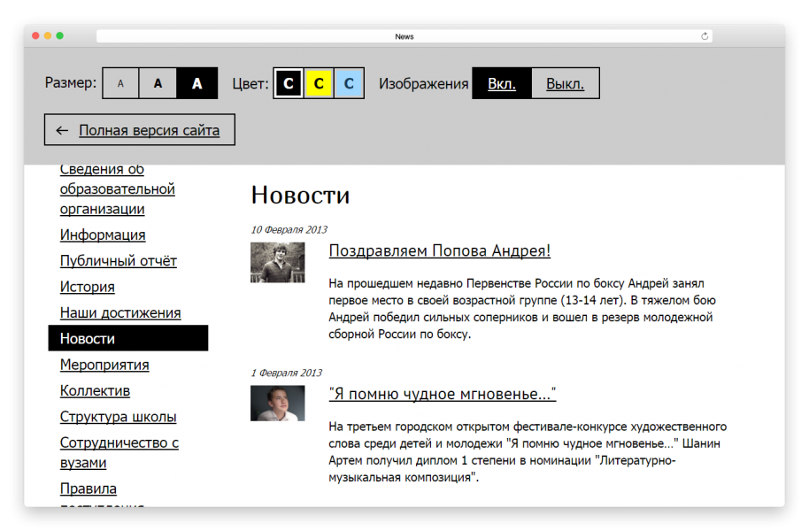 Версия для лиц с ограниченными физическими возможностями создана в соответствии с ГОСТ Р 52872-2012 и WCAG2.0.