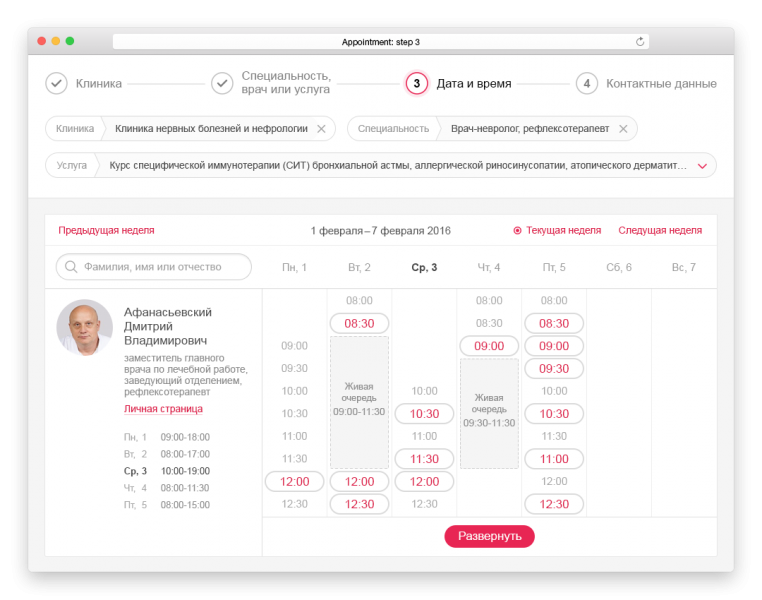 запись к конкретному врачу
