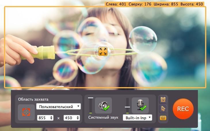 Захватывайте видео в полноэкранном режиме или выбирайте отдельные участки. - Захват звука с любых устройств: