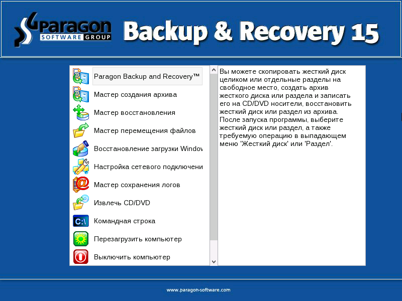 Paragon Backup & Recovery 15 Home – комплексное решение для аварийного восстановления системы. Благодаря включению в этот продукт новейшей технологии создания образа диска, позволяющей сохранять его в форматах виртуальных контейнеров (pVHD, VHD, VMDK), осуществлена полная поддержка конфигураций GPT/uEFI, Windows BitLocker и Windows 8.1, а также возможность создания на CD/DVD, флеш-носителе, или в ISO-образе усовершенствованной среды восстановления на базе WinPE или Linux, таким образом компания предлагает все необходимые функции для создания надежной защиты от любого сбоя.
