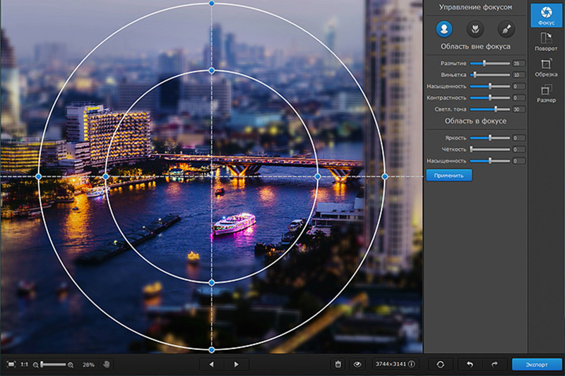 - Настраивайте яркость, контраст и другие параметры изображения в зонах фокуса и размытия